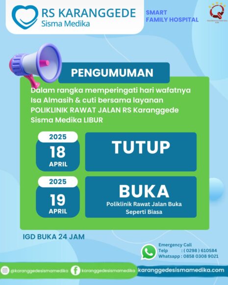 PENGUMUMAN LIBUR PELAYANAN POLIKLINIK Dalam rangka memperingati Hari Wafat Isa Almasih dan cuti bersama,…