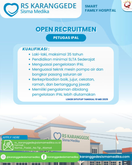 RS Karanggede Sisma Medika membuka kesempatan bergabung sebagai:Petugas IPAL (Instalasi Pengolahan Air Limbah) Kualifikasi:• Laki-laki,…