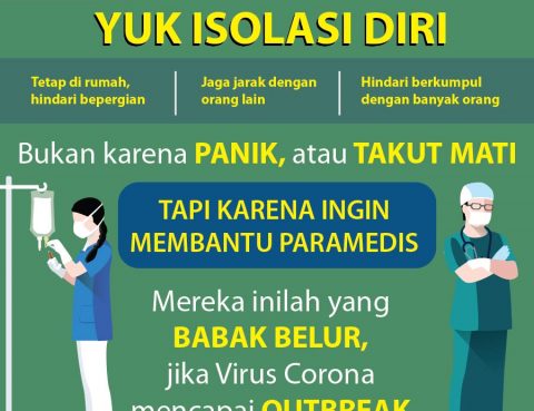 Salah satu cara mencegah penyebaran Pandemic Covid 19 adalah dengan mengisolasi diri sendiri demi membantu meringankan tugas Paramedis yang berjuang digaris terdepan.